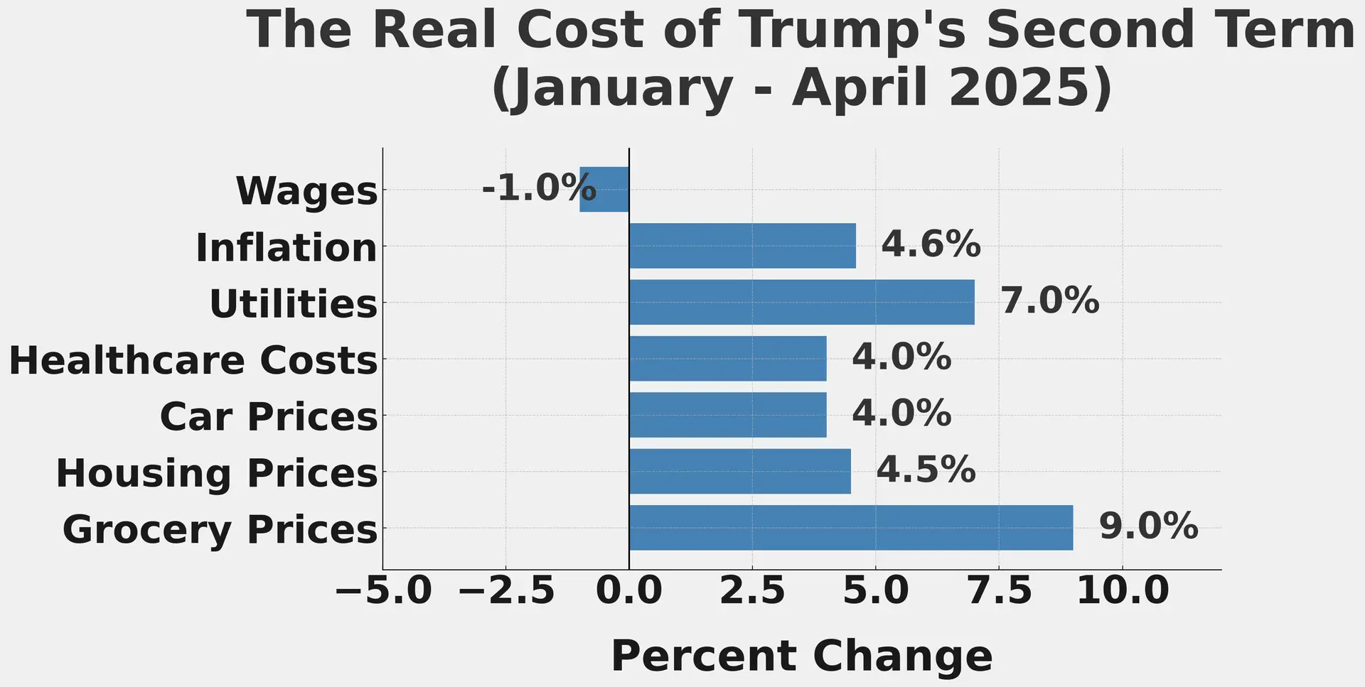 Since January 2025, the American wallet has been under siege. Grocery staples have surged: milk’s up 6%, bread’s up 7%, and eggs — those humble, breakfast-table eggs — are up a staggering 9%. Apples, potatoes, beef — pick a shelf, any shelf — it’s all more expensive. Food inflation is so routine now that “$100 grocery run” memes aren’t even funny anymore; they’re just facts of life.